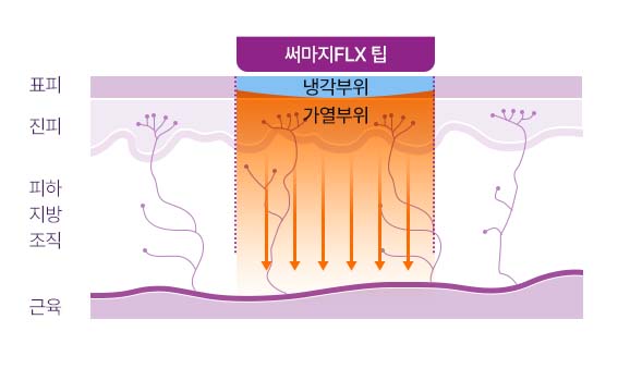 써마지 FLX 시술은 고주파(RF) 에너지를 피부 진피층 깊숙이 전달하여