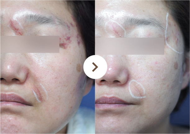 울트라펄스앙코르, 브이빔퍼펙타 등 60여종이 넘는 다양한 레이저들과 스킨부스터를 병합해 피부 재생을 유도하며, 흉터의 깊이와 유형에 따라 맞춤 치료를 진행합니다.