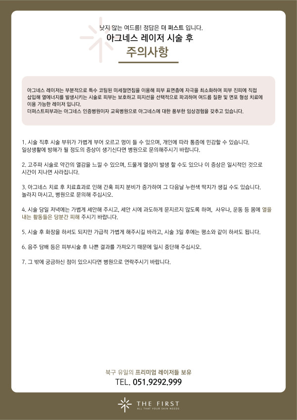 아그네스 시술 후 주의사항 > 시술 후 주의사항 | 부산 더퍼스트피부과 부산본점 | 화명동 피부과전문의