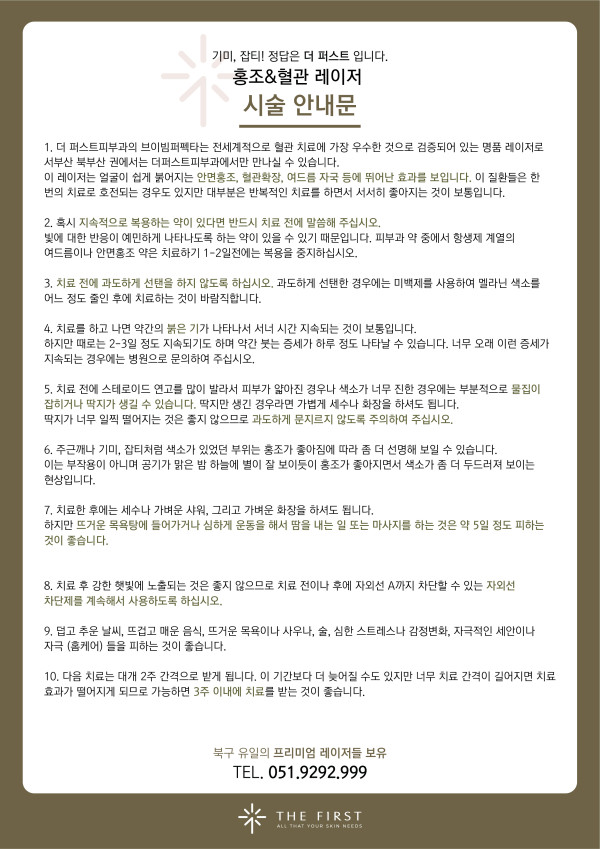 홍조 시술 후 주의사항 > 시술 후 주의사항 | 부산 더퍼스트피부과 부산본점 | 화명동 피부과전문의