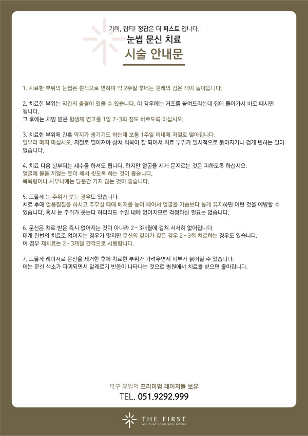 눈썹문신 치료 후 주의사항 > 시술 후 주의사항 | 부산 더퍼스트피부과 부산본점 | 화명동 피부과전문의