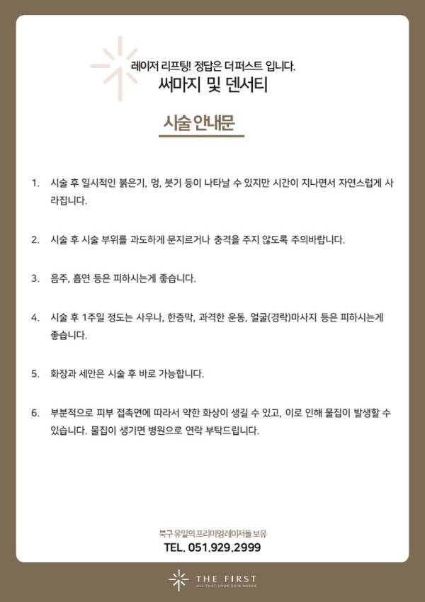 써마지, 덴서티 리프팅 주의사항 > 시술 후 주의사항 | 부산 더퍼스트피부과 부산본점 | 화명동 피부과전문의