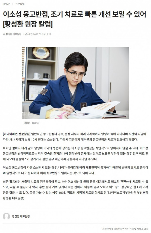 [언론보도]이소성 몽고반점, 조기 치료로 빠른 개선 보일 수 있어 > 공지사항 | 부산 더퍼스트피부과 부산본점 | 화명동 피부과전문의