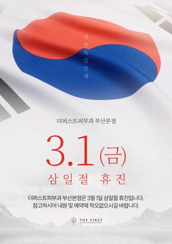 더퍼스트피부과는 3.1절을 맞이하여 휴진합니다.