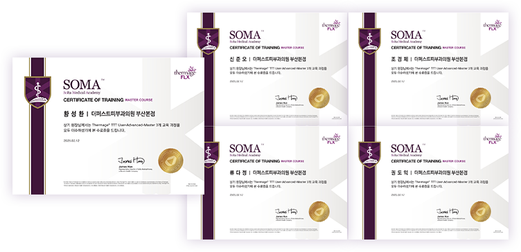 더퍼스트피부과의 의료진 5인은 써마지 마스터 코스를 모두 수료하였습니다.