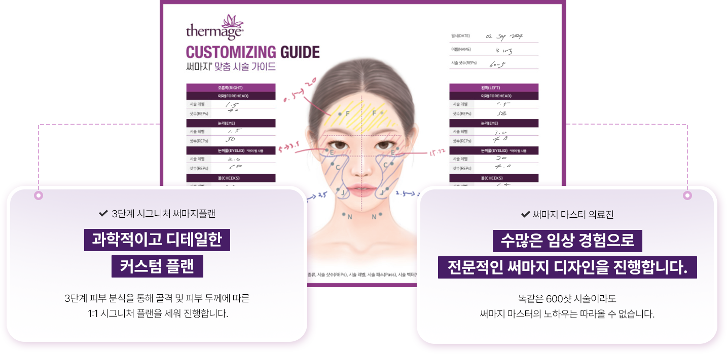 정밀하게 파악하여 에너지와 샷수를 조절하는 시술 플랜을 세웁니다.