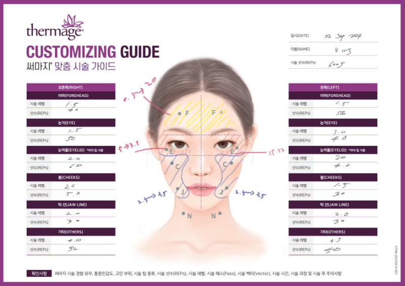 팁 사용, 에너지 등을 고려하여 시그니처 써마지를 진행합니다.