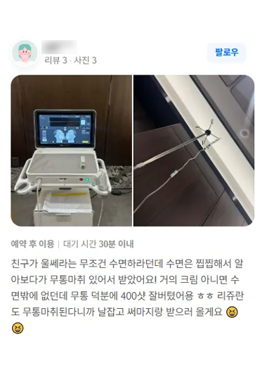 또한, 수면마취라고도 불리는 의식하 진정마취와 무통수액을 통한 마취까지 하고 있어 통증에 대한 걱정을 크게 하지 않으셔도 됩니다.